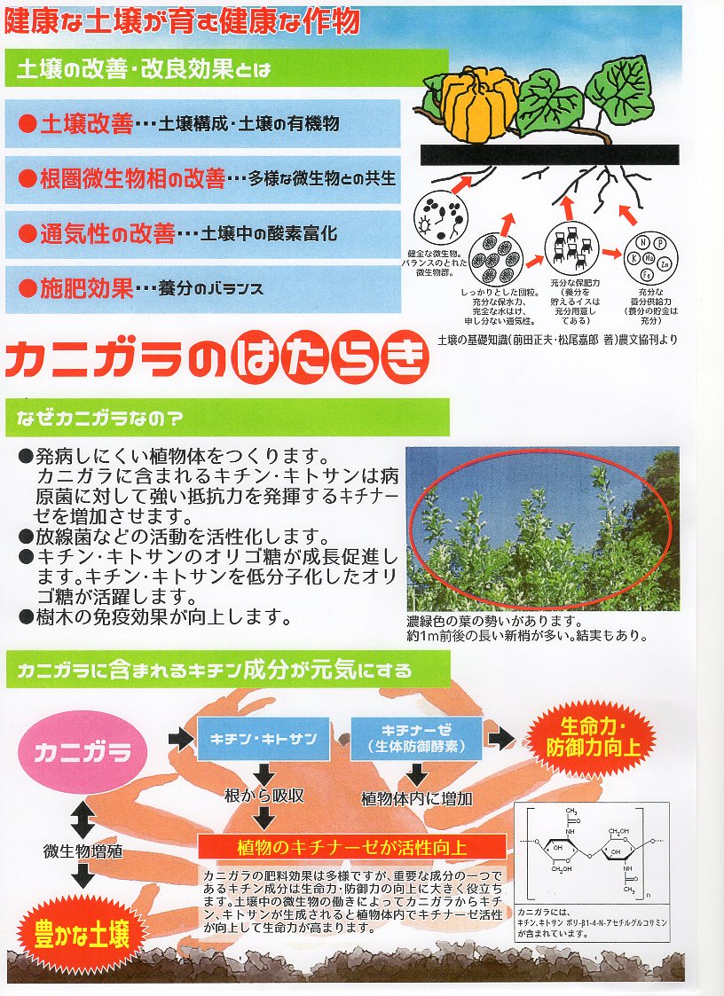 Высокопитательное органическое удобрение из панциря краба для подкормки рассады, овощных и цветочных растений, плодовоягодных и декоративных деревьев и кустарников. Обладает лечебными свойствами и успешно применяется для борьбы с такими заболеваниями, как корневой рак, белая гниль, загнивание корней. Высокое содержание кальция – 8%, способствует повышению сахара и витаминов в плодах. Имеют в своем составе chitin, chitosan - минеральные добавки, которые широко используются во многих витаминах и пищевых добавкахдля повышения имунитета