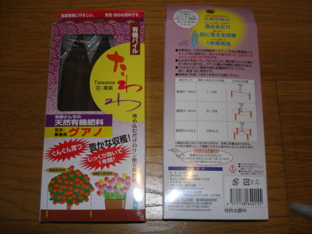 Из органических удобрений с древних времен человек использует навоз, компост, перегной, но широкое примение в домашних условиях этих удобрений невозможно из-за трудностей с перевозкой, неприятного запаха, отсутствия склада для хранения и других причин. Поэтому AIDI SHOUZI предлагает японские органические удобрения в виде стержней и гранул, которые изготовлены из семян растений, птичьего помета и панциря краба по оригинальной технологи с добавлением минеральных добавок. Низкая цена, простота и доступность использования этих удобрений  на огороде, в поле и  в любой квартире получили высокую оценку в Японии и в других странах.